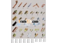 Angular material, bolts, curtain rail fittings, door stops, drainage pipelines, end posts, frames, furniture legs, hinges, magnetic catches, mirror brackets, nails, pulleys, shelves, triangle brackets, and other series of furniture hardware are available.